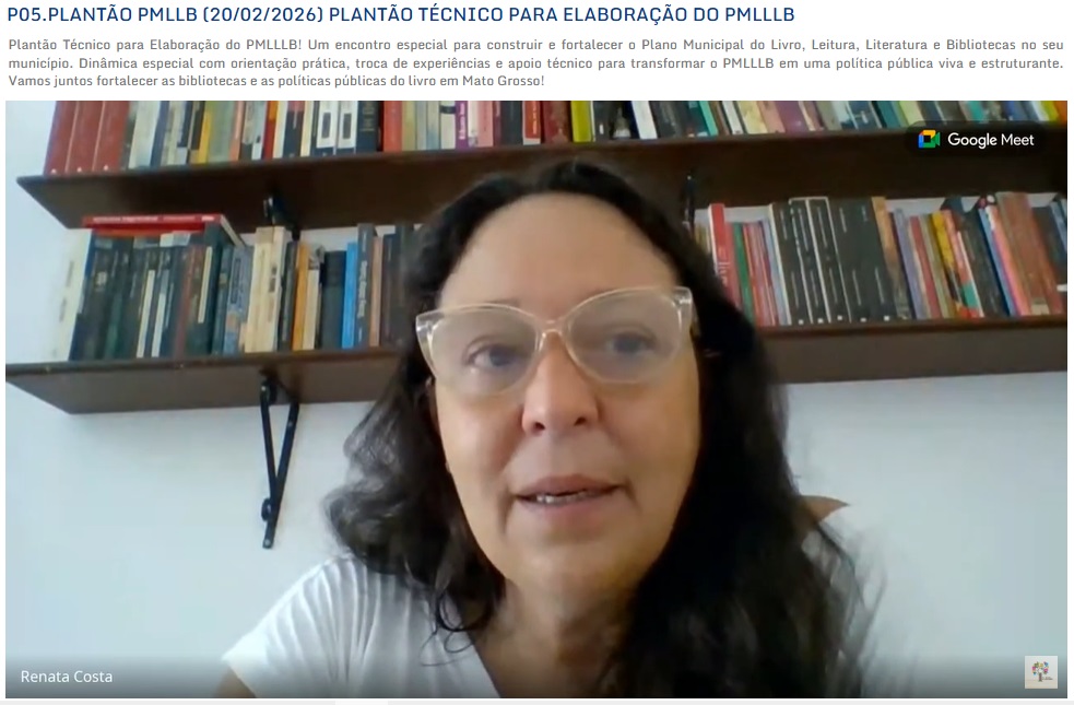 Os plantões técnicos do Programa de Capacitação estão sendo realizados às sextas-feiras, às 8h30 (horário de Cuiabá/MT), até o fim de março, por meio do Google Meet. Os encontros on-line são voltados para gestores, bibliotecários e agentes culturais dos 112 municípios inscritos na formação.
