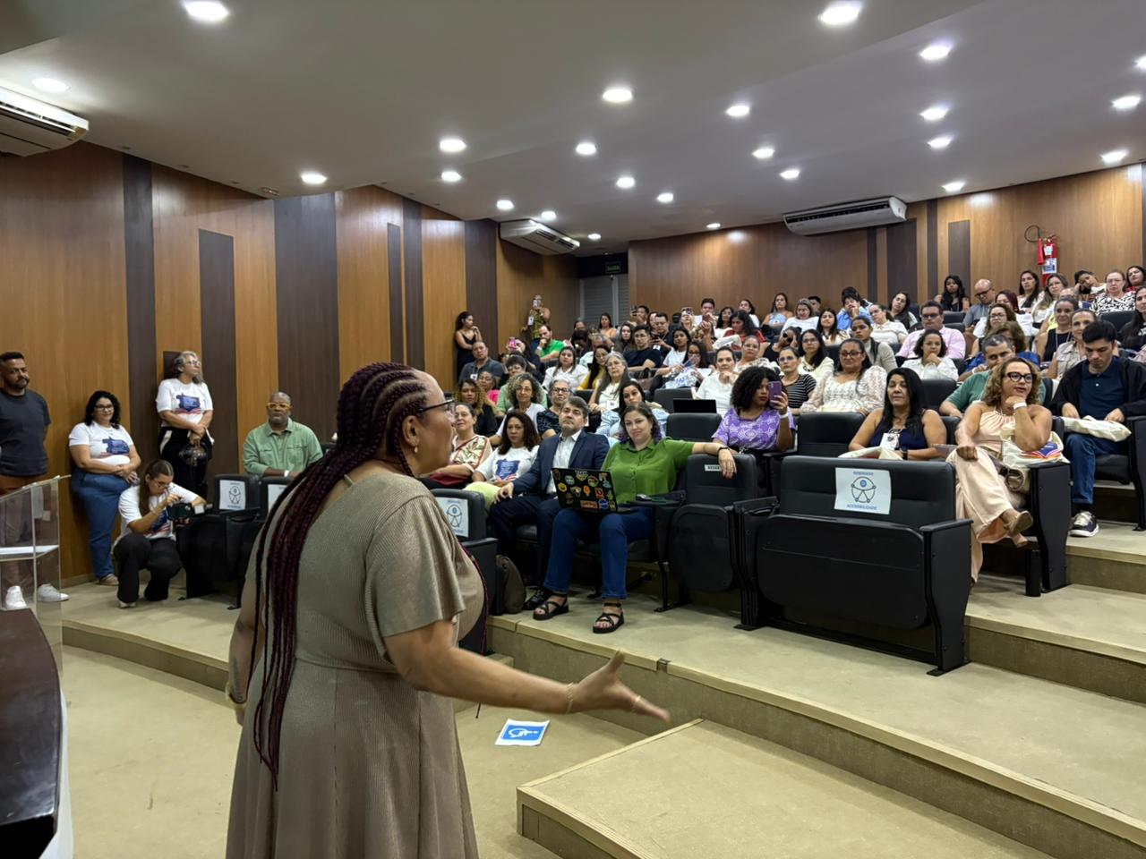 A cerimônia de abertura do Encontro Presencial de Encerramento do Primeiro Módulo do Programa de Capacitação para o Fortalecimento do Livro, Leitura, Literatura e Biblioteca de Mato Grosso, na tarde desta terça-feira (17), foi marcada por um momento de grande emoção e sensibilidade artística. A escritora e poeta Luciene Carvalho, presidente da Academia Mato-Grossense de Letras, protagonizou uma performance sobre ser mulher negra e tantas profundidades que a atravessa. E foi assim que o evento foi oficialmente aberto, com fortes aplausos.