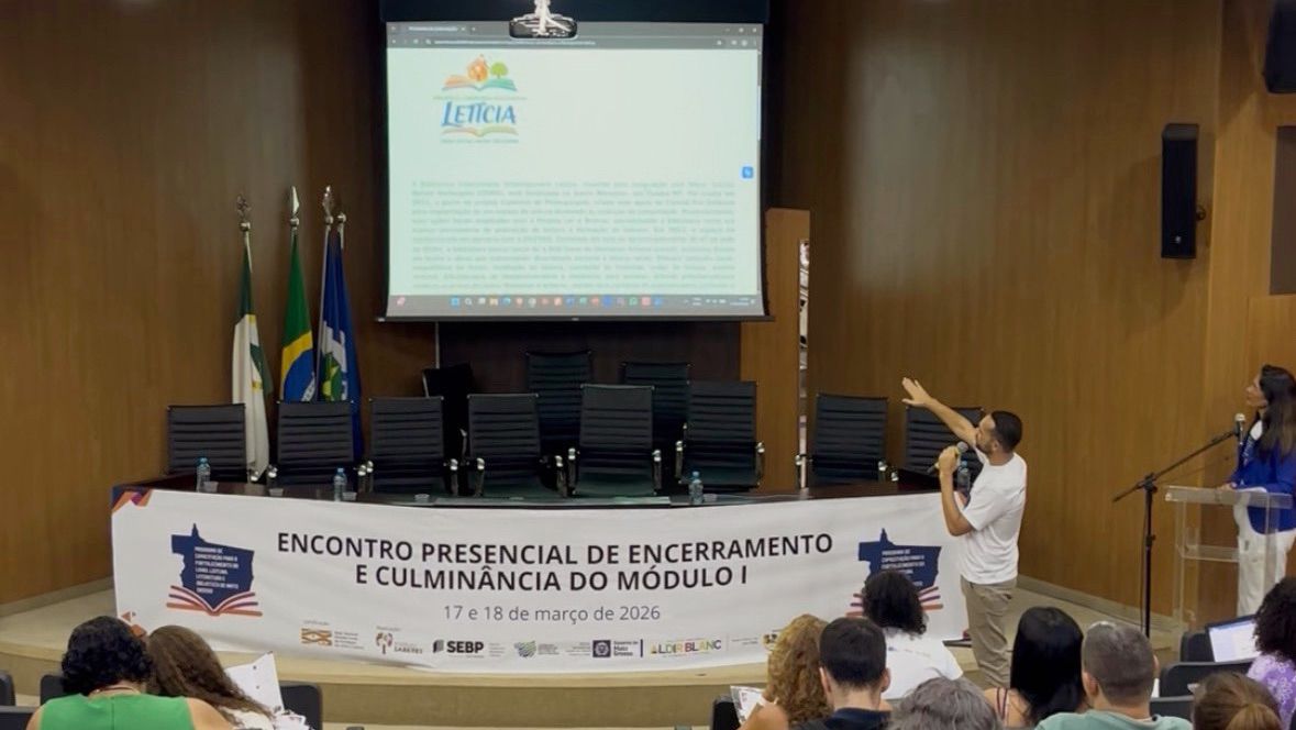 Durante o Encontro Presencial do Programa de Capacitação para o Fortalecimento do Livro, Leitura, Literatura e Bibliotecas de Mato Grosso, nesta terça-feira (17), foi lançada a campanha “Minha Biblioteca Faz a Diferença”, a partir da apresentação do consultor pedagógico Adriano Souza. A iniciativa tem como objetivo dar visibilidade ao trabalho realizado pelas bibliotecas públicas municipais e comunitárias em todo o Estado.