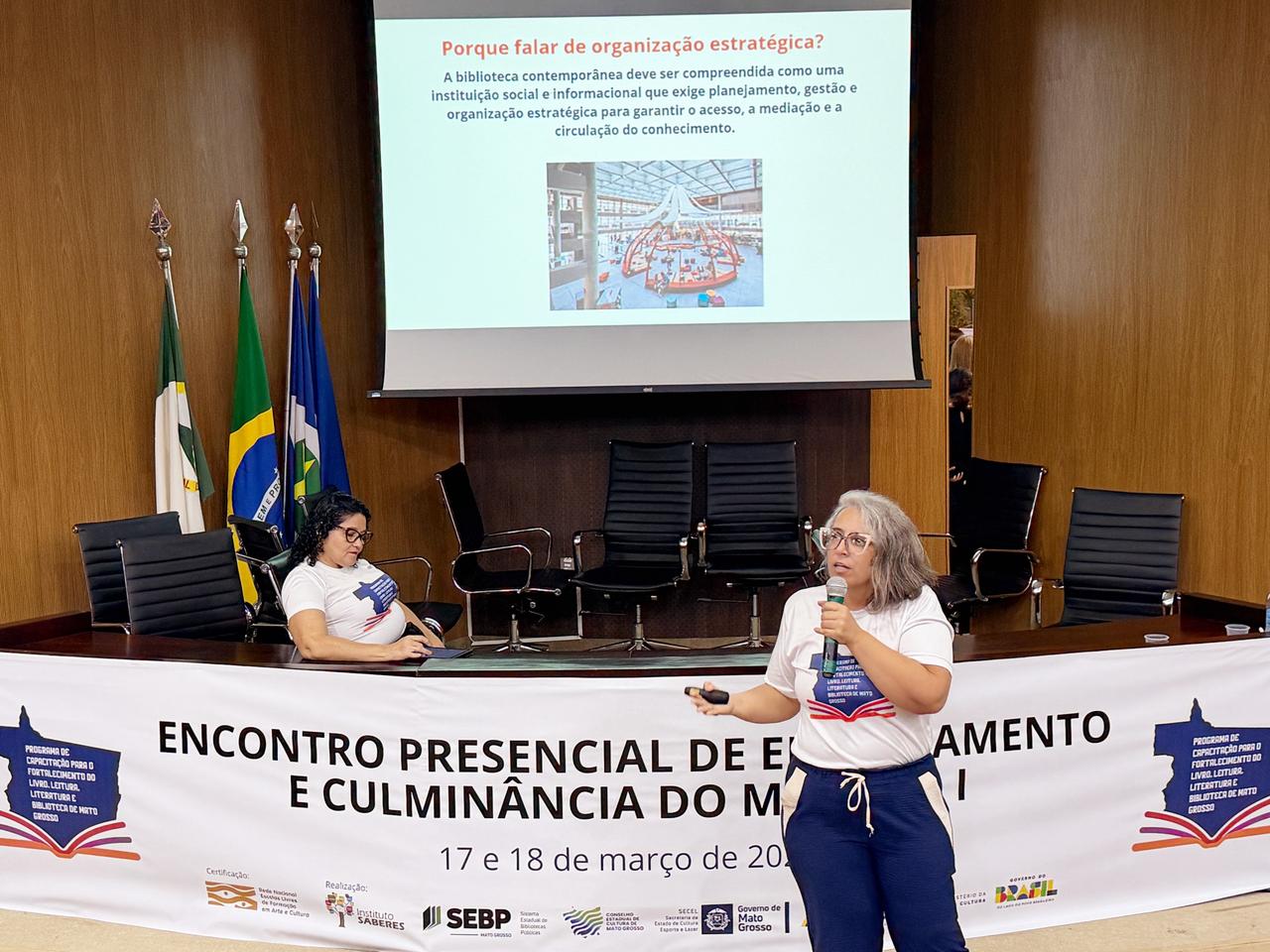 A relação entre planejamento, gestão e comunidade esteve no centro do painel “Estrutura, Serviços e Comunidade: Organizando a Biblioteca a partir do PMLLLB”, realizado durante o Encontro Presencial do Programa de Capacitação para o Fortalecimento do Livro, Leitura, Literatura e Bibliotecas de Mato Grosso, nessa quarta-feira (18), na Associação Mato-grossense dos Municípios.