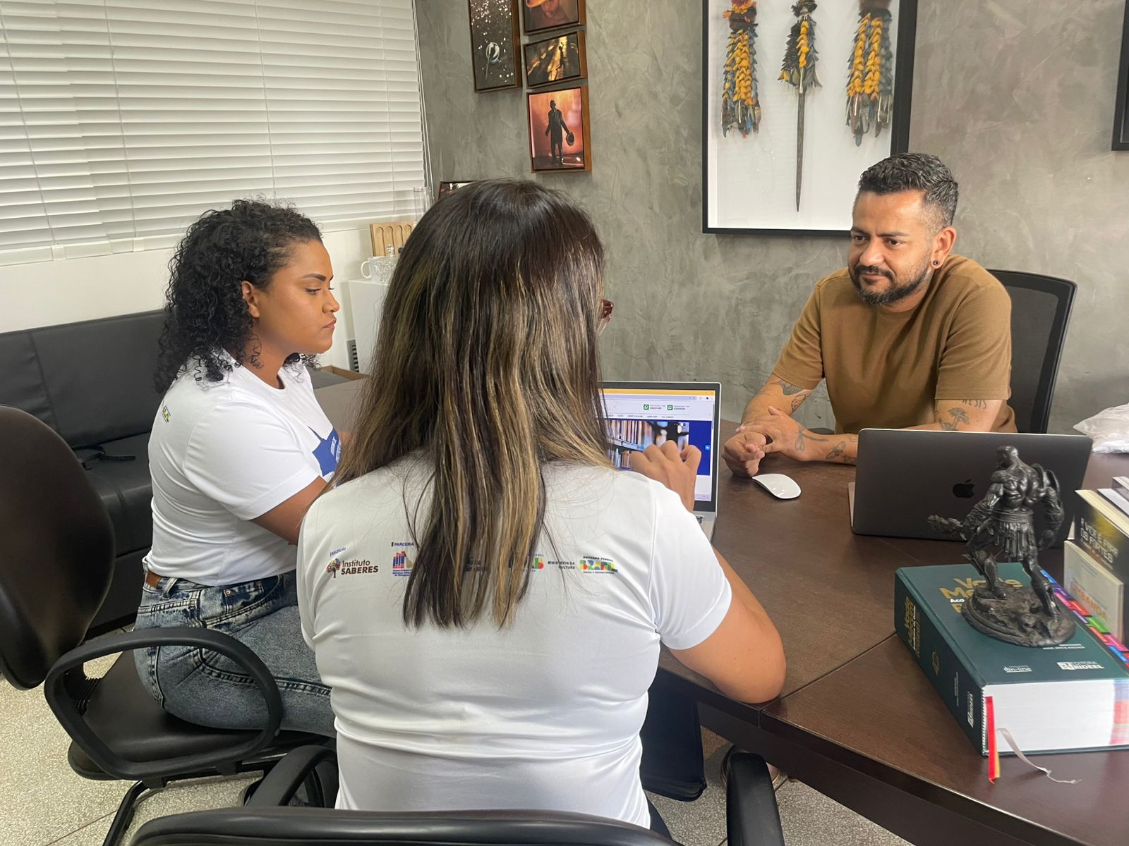 A presidente do Instituto Saberes, Lorena Boaventura, e a coordenadora financeira Lois Lene Bento de Souza, se reuniram, na última quinta-feira (18), com o objetivo de promover um balanço no andamento do Programa de Capacitação para o Fortalecimento do Livro, Leitura, Literatura e Bibliotecas de Mato Grosso, realizado pelas duas instituições, e para planejar ações de incentivo de que mais municípios adiram à formação.