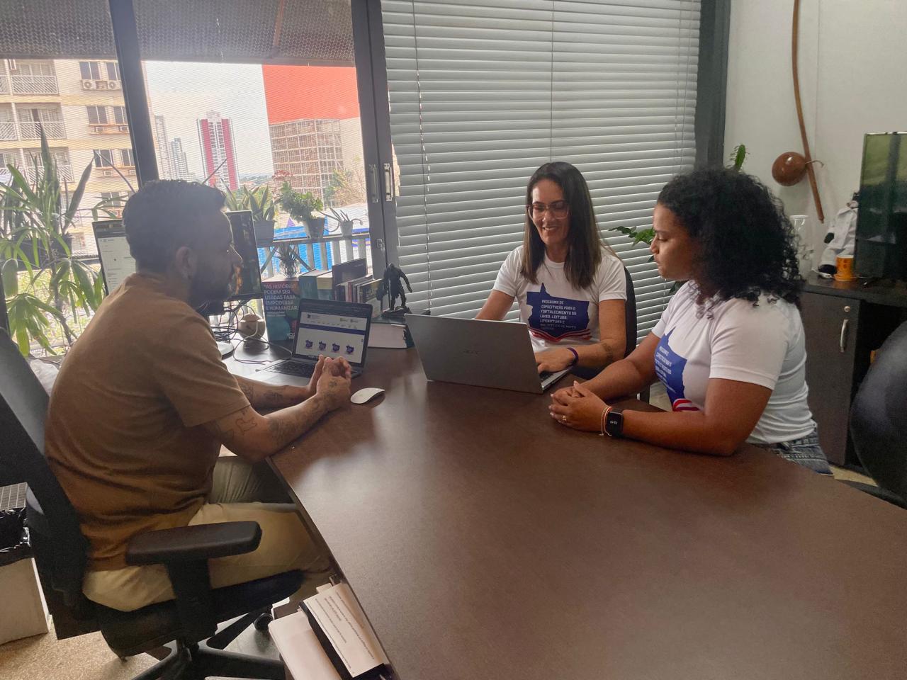 A presidente do Instituto Saberes, Lorena Boaventura, e a coordenadora financeira Lois Lene Bento de Souza, se reuniram, na última quinta-feira (18), com o objetivo de promover um balanço no andamento do Programa de Capacitação para o Fortalecimento do Livro, Leitura, Literatura e Bibliotecas de Mato Grosso, realizado pelas duas instituições, e para planejar ações de incentivo de que mais municípios adiram à formação.